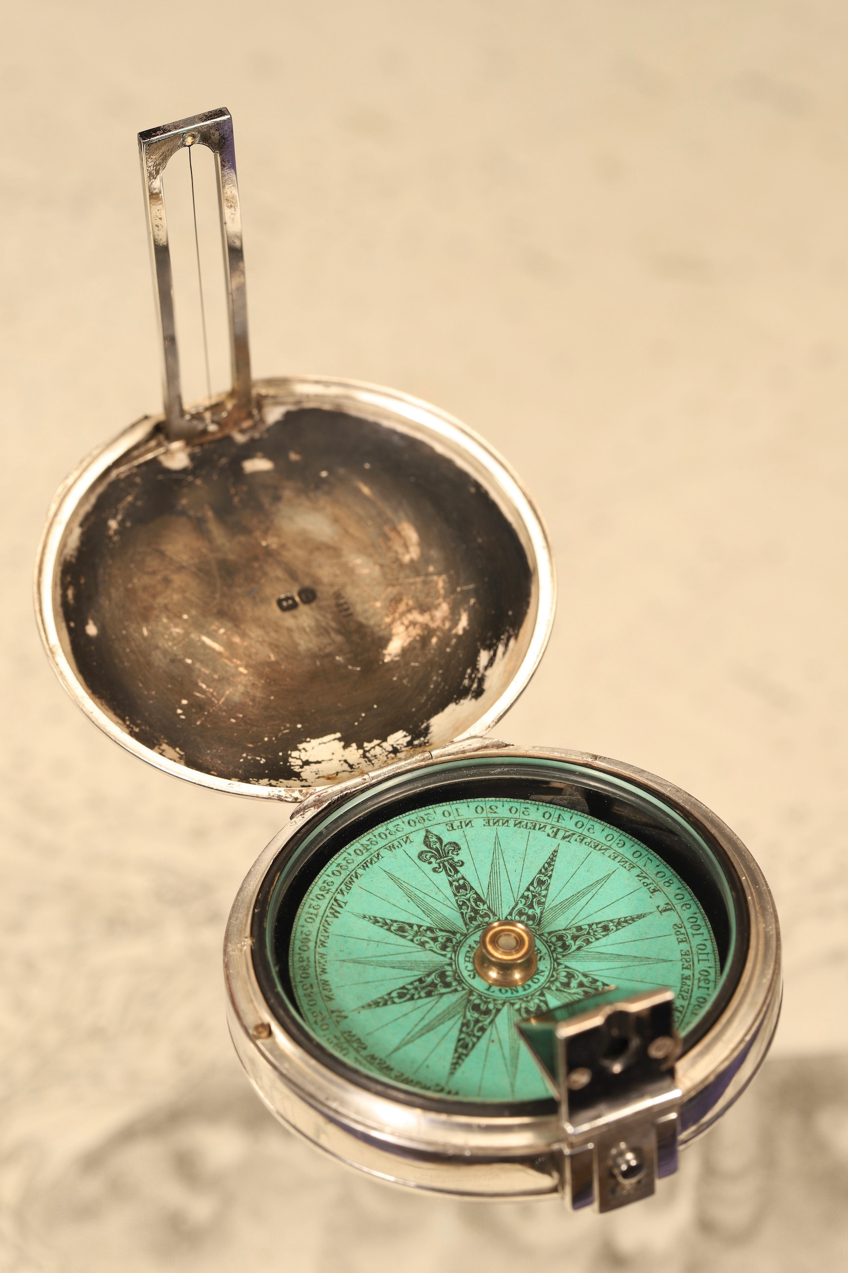 VERY SCARCE GEORGIAN SILVER PRISMATIC COMPASS BY SCHMALCALDER FOR MACRAE c1828