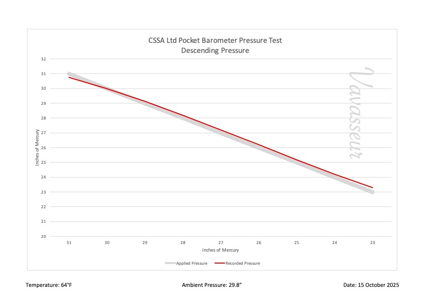 Condition: The pocket barometer the subject of a full service, conservation, and calibration under laboratory conditions, see performance chart from dynamic test. The movement functioning as intended with excellent accuracy across the extended range. The dial clean and clear, the altitude ring moving with correct resistance, the glass clear. The brass case retaining most original lacquered finish, some minor ageing and oxidation.