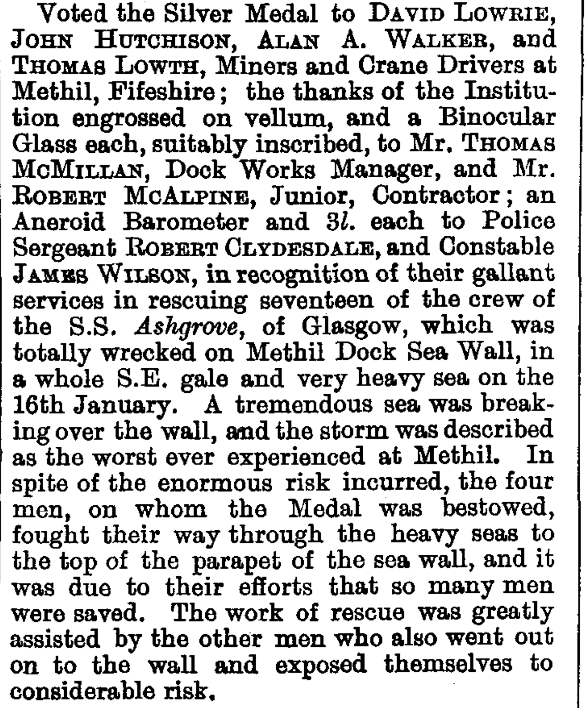 Click HERE to read a more detailed account of the wreck and rescue from the Methil Heritage website.